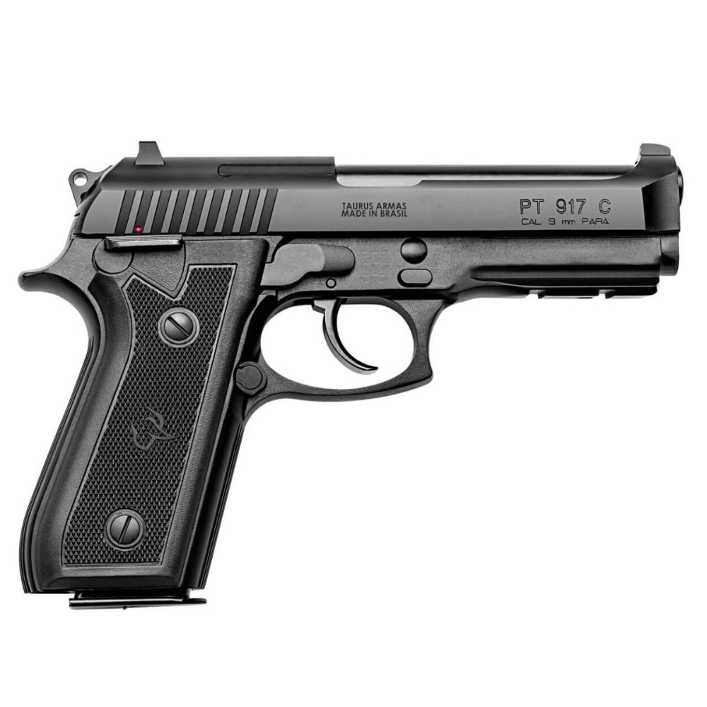 A TAURUS 917 é a versão com cano menor da tradicional 92, com armação em alumínio, adequada para a utilização em diversos segmentos, como esportivo, militar, policial e defesa pessoal. Possui mecanismo de disparo em ação simples e dupla, cão externo, trava manual e desarmador do cão ambidestros.